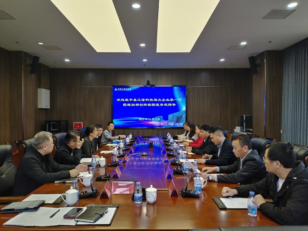 2025年11月13日,武平县工信科技局副局长钟德富率相关企业家一行调研闽都创新实验室,实验室主任助理叶芸、相关研发团队和管理部门负责人陪同调研并交流座谈。
